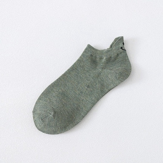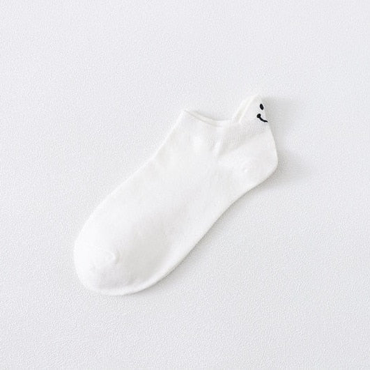 10 Pairs Spring Summer Female Socks Japanese Lovely Personality Heel Embroidered Smiling Face Lovers Solid Cotton Ankle Socks