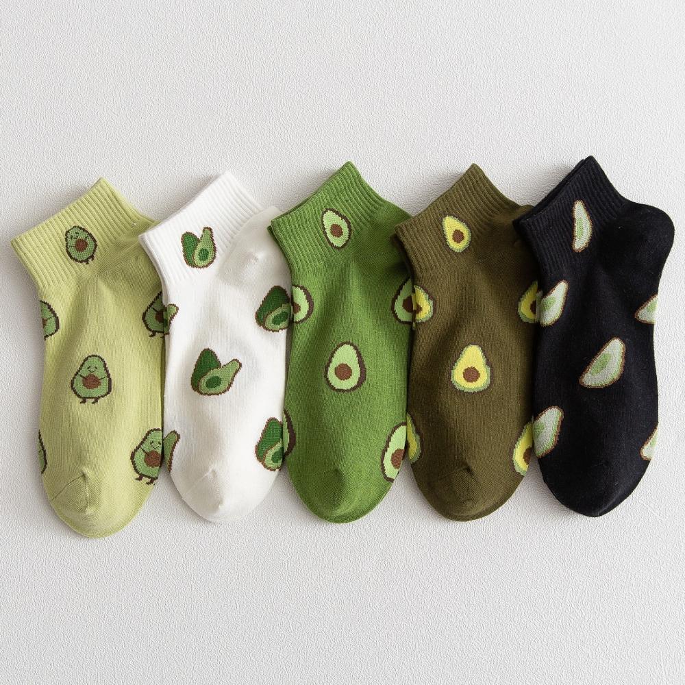 10Pcs=5Pairs/Pack New Cartoon Fruit Ankle Socks Women Summer Japanese Avocado Cute Boat Socks Chic Fashion Low-Cut Cotton Socks